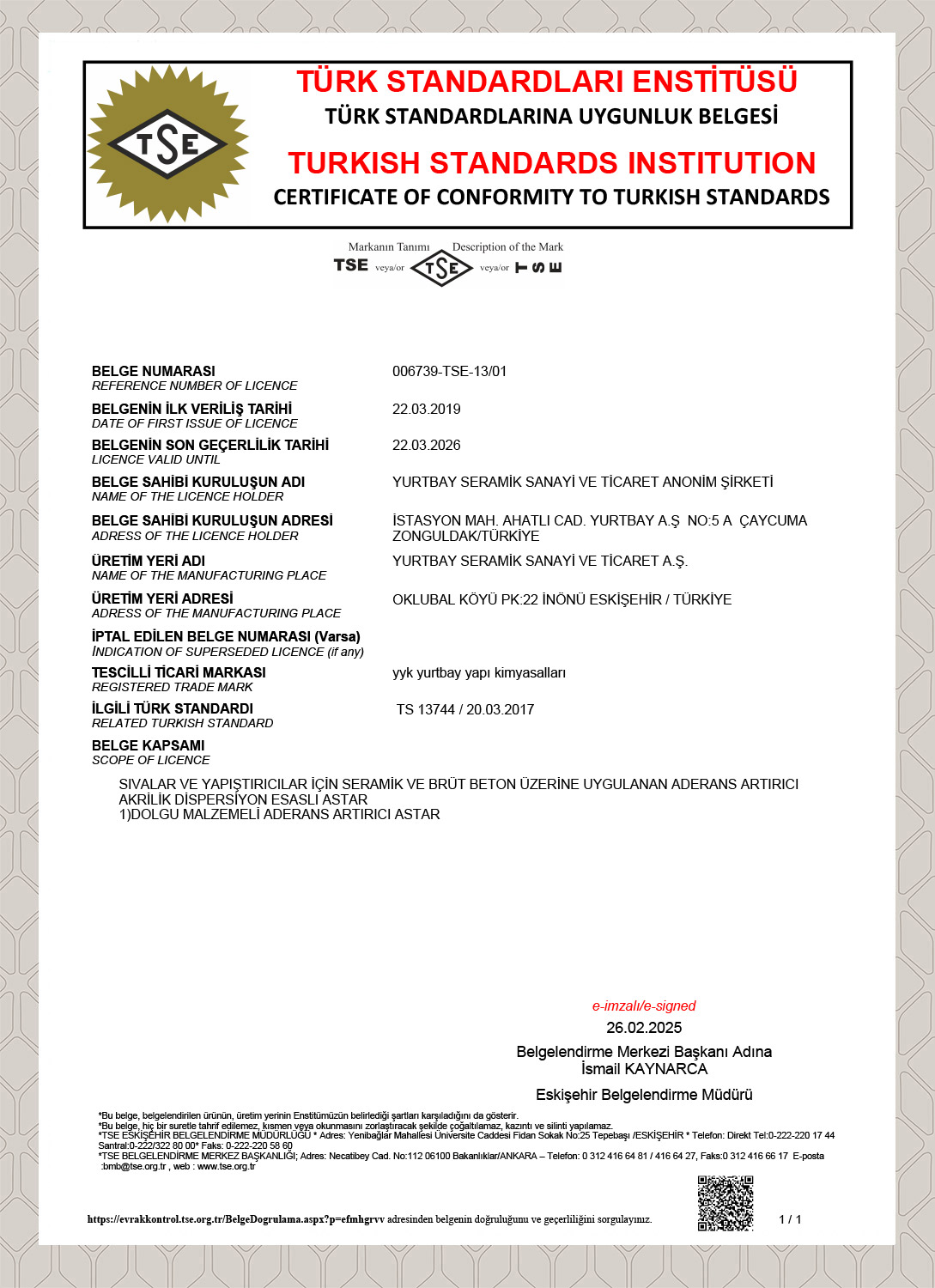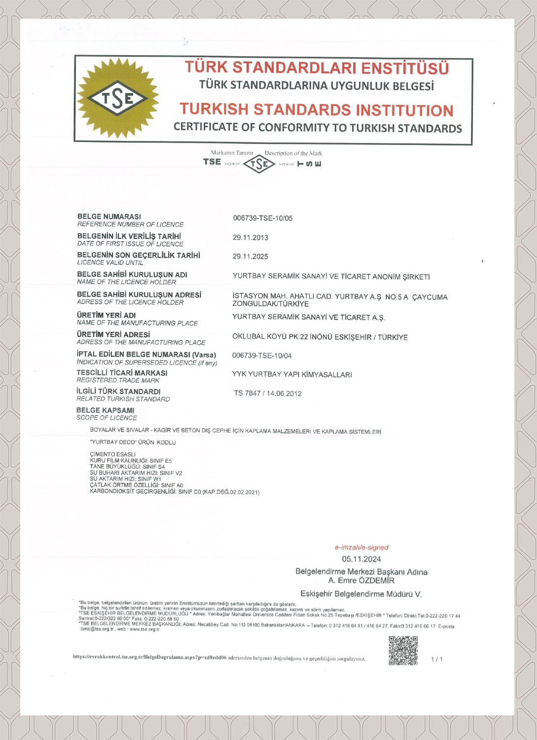 TS 7847 Yurtbay Deco Ürün Uyg. Bel. 2023