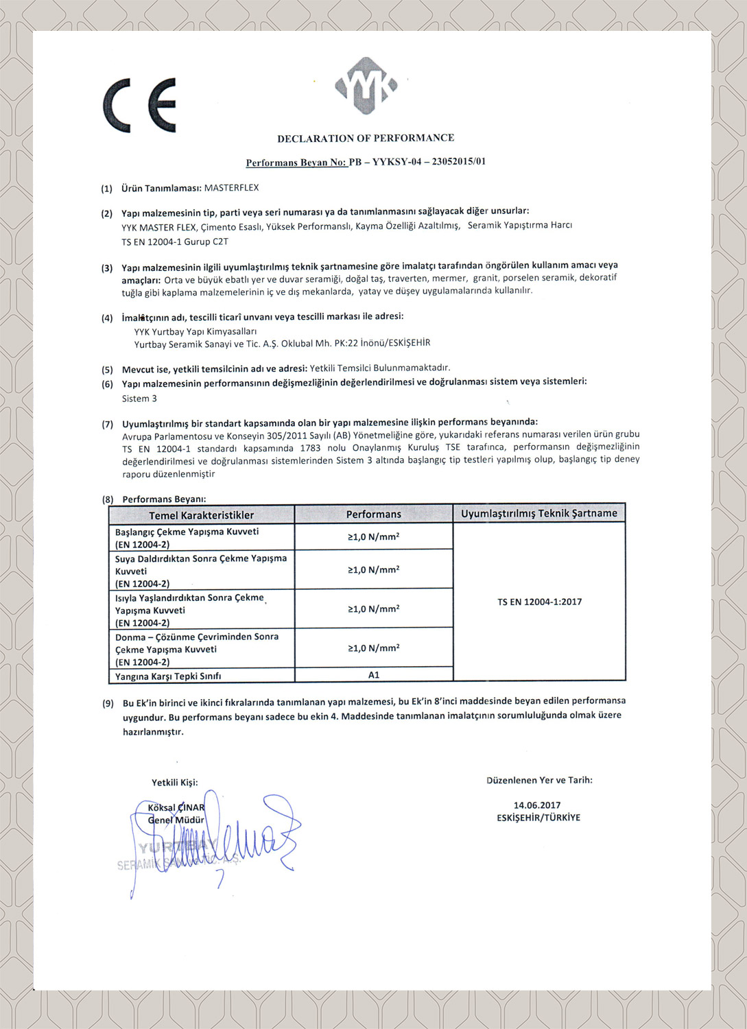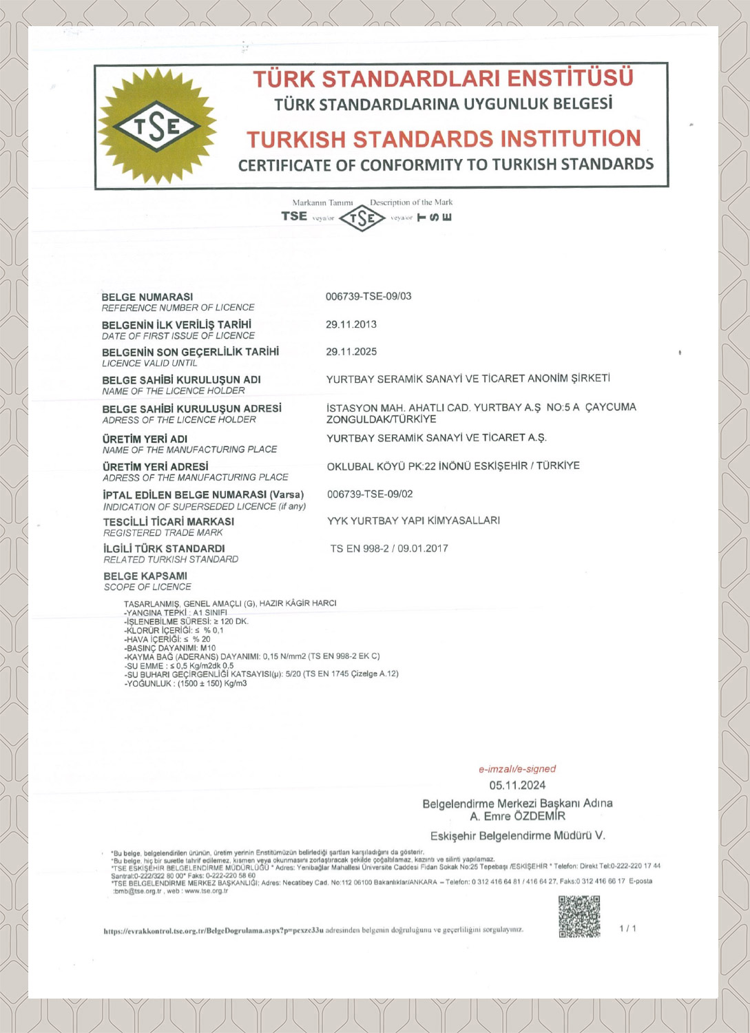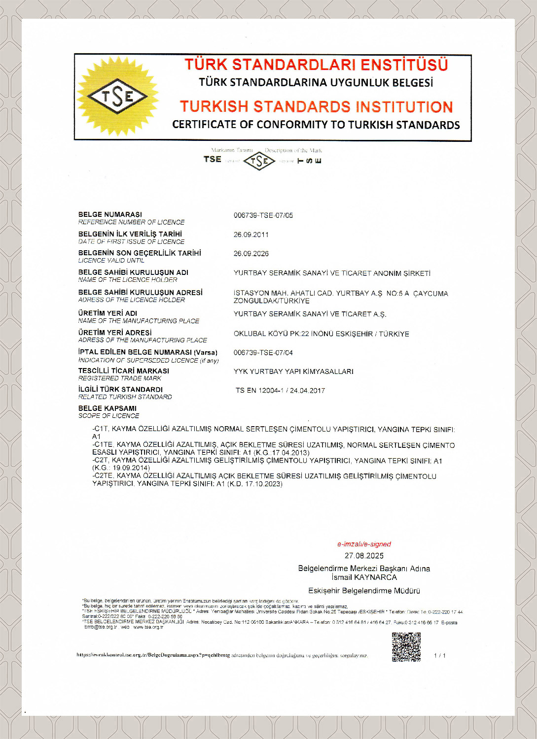 TS EN 12004-1 Seramik Yapıştırıcılar Ürün Uyg. Bel. 2023 Eskişehir