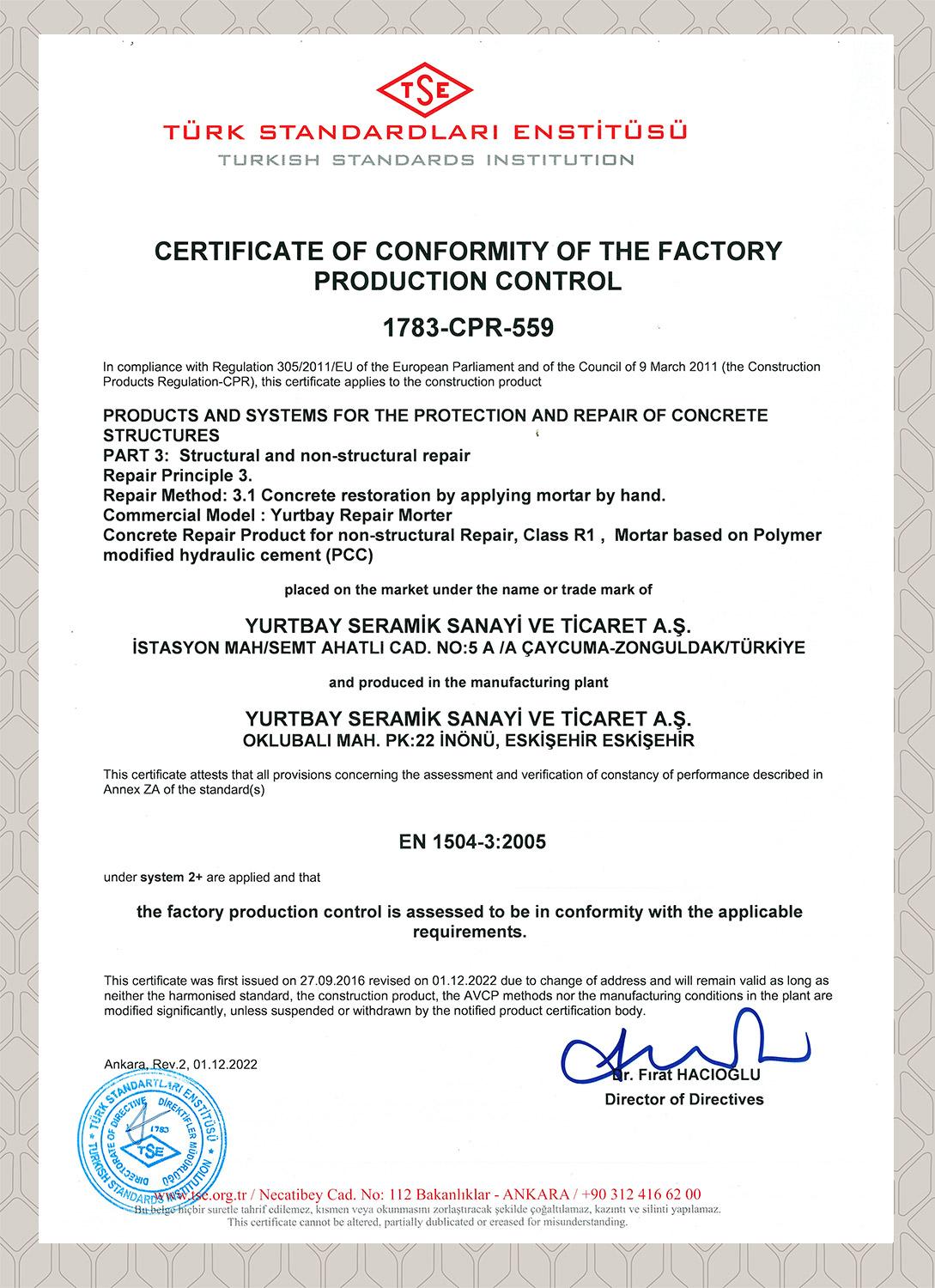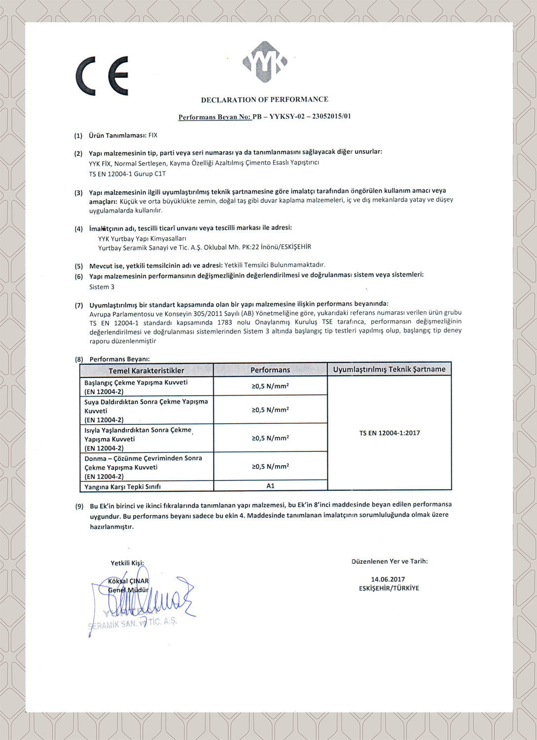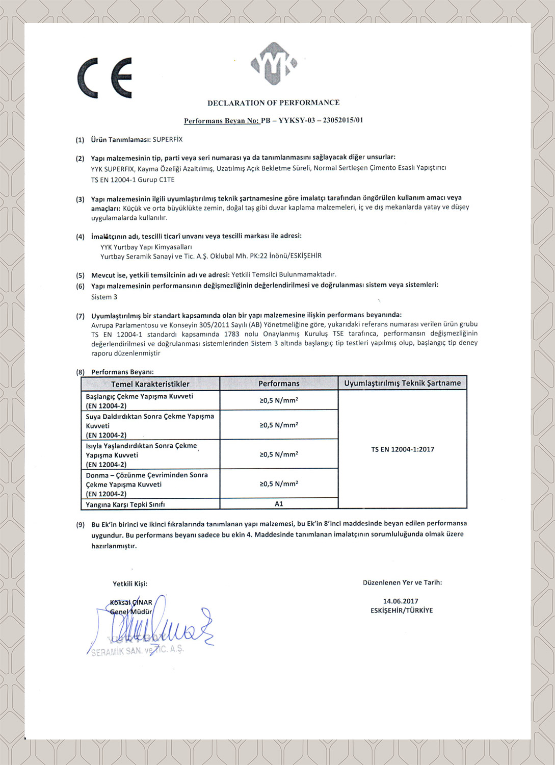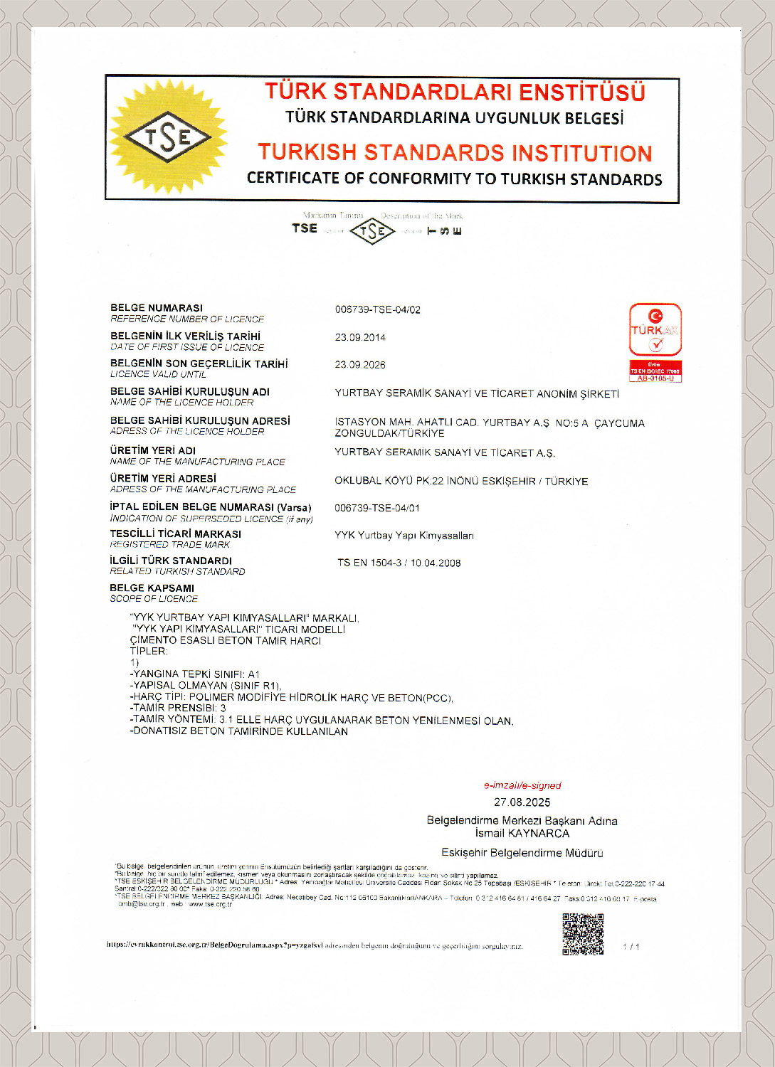 TS EN 12004-1 Seramik Yapıştırıcılar Ürün Uyg. Bel. 2023 Eskişehir