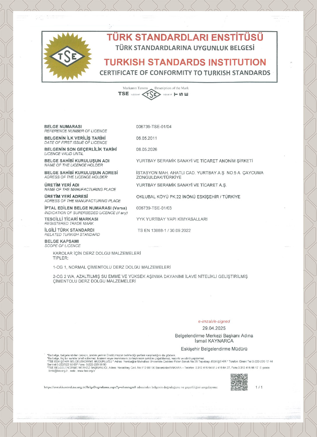 TS EN 13888 Derz Dolgu Ürün Uyg. Belg. 2023 (Eskişehir)
