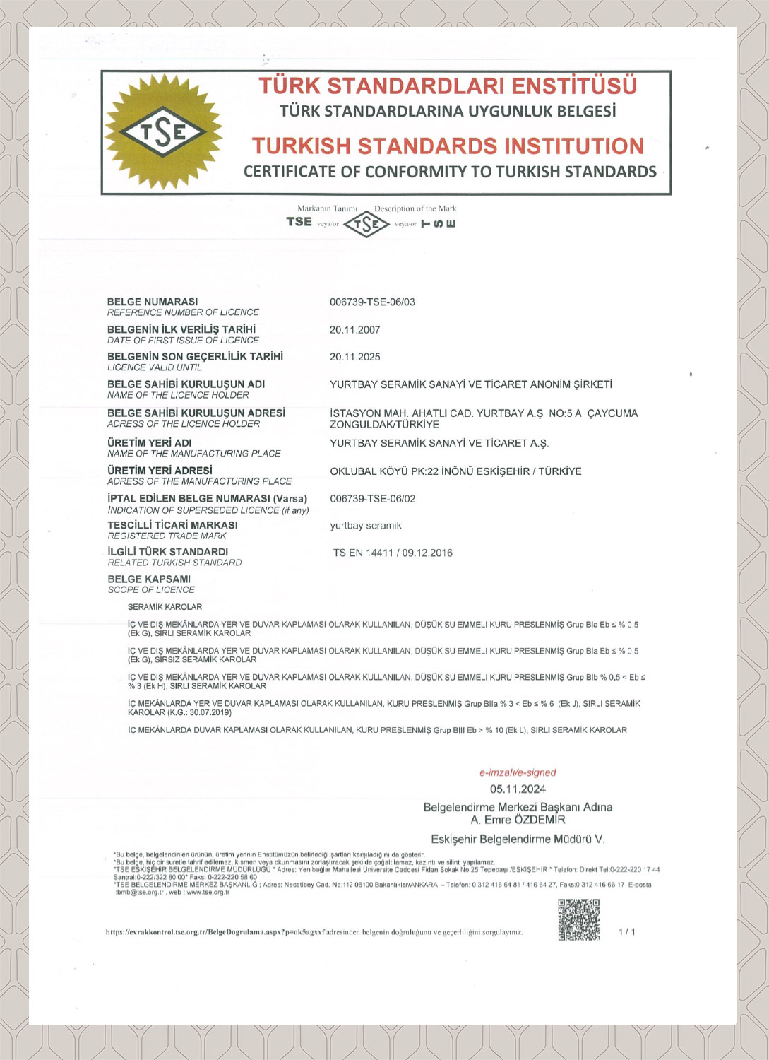 TS EN 14411 2016 Ürün Uygunluk Bel. 2020