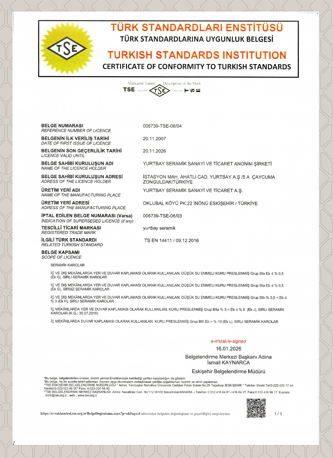 TS EN 14411 2016 Ürün Uygunluk Bel.