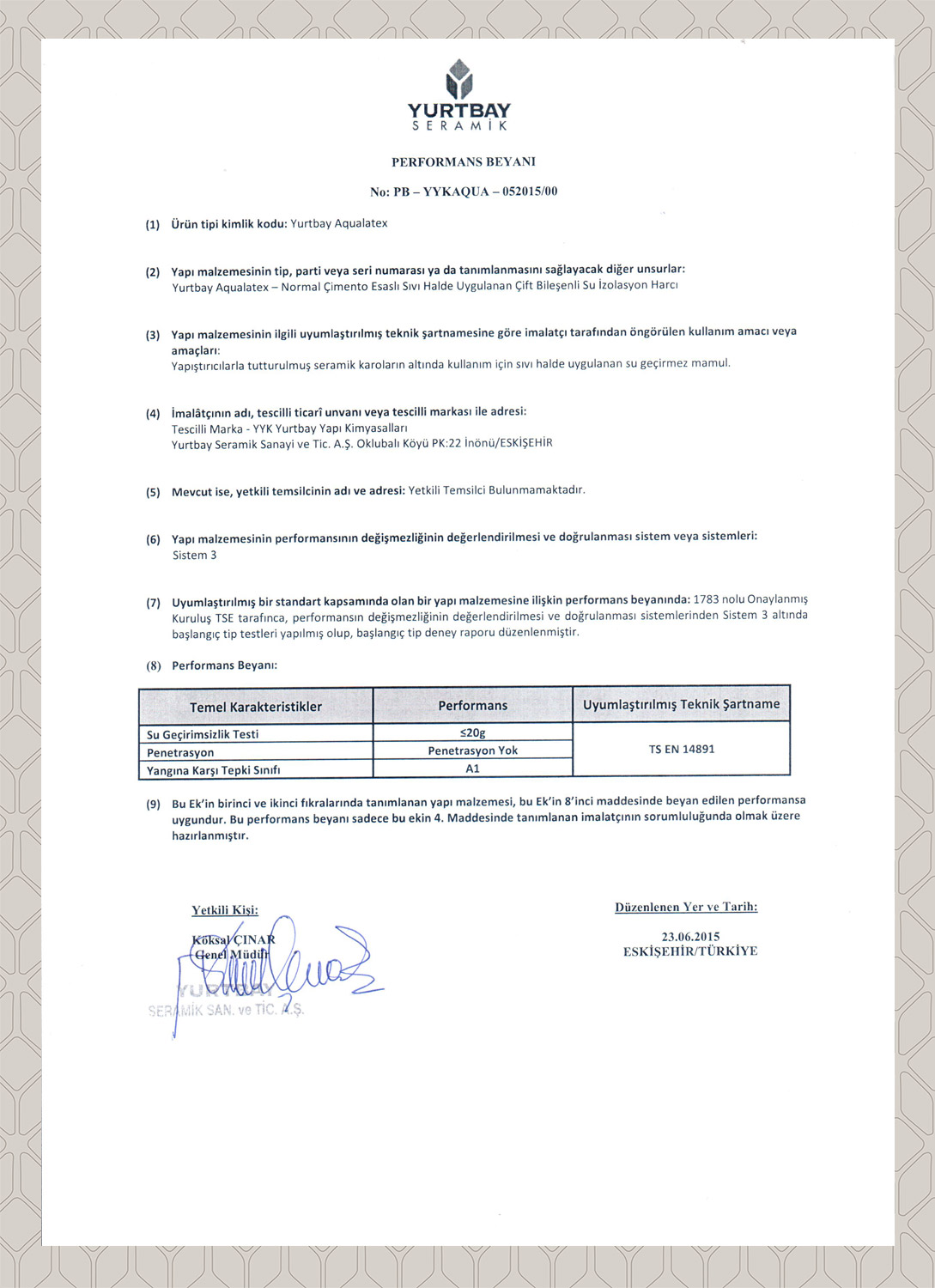 TS EN 14891 Aqualatex-Isoqua Ürün Uyg. Bel. 2023