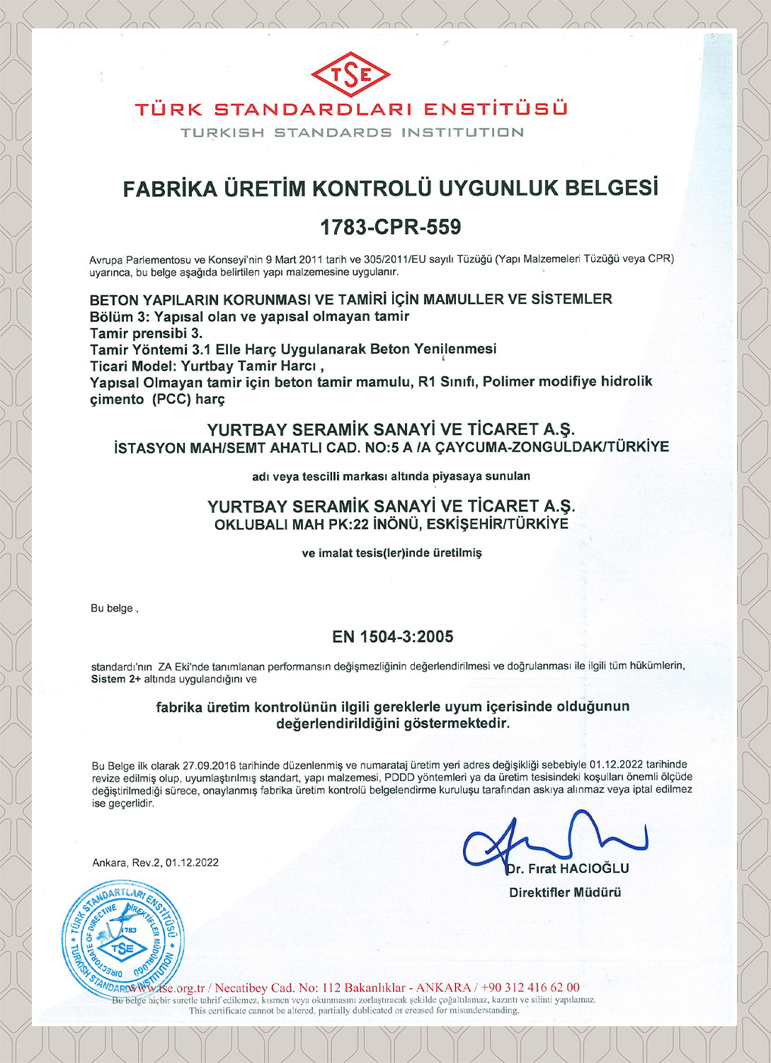 TS EN 13813 Tesviye Şapı Ürün Uygunluk Belgesi 2023