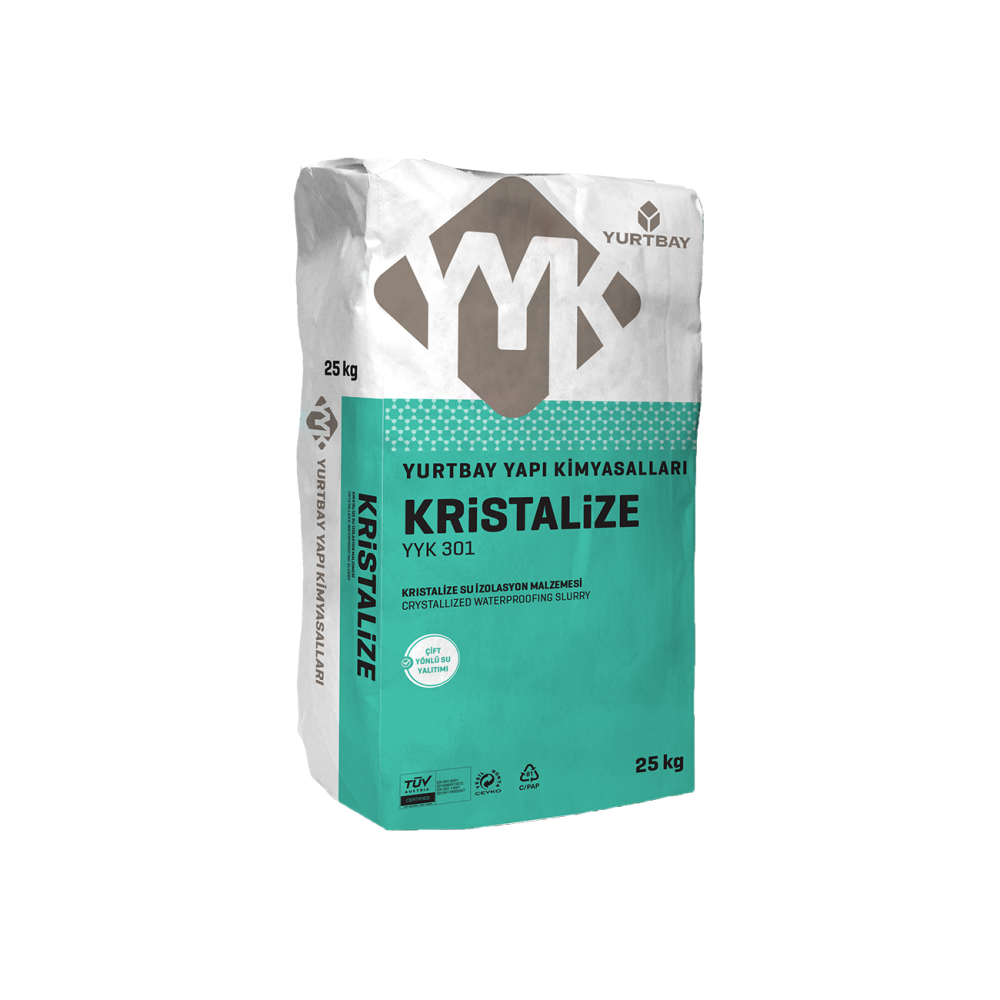 YURTBAY KRİSTALİZE, çimento esaslı, kapiler etkili, negatif ve pozitif yönde kullanılabilen, tek bileşenli, kristalize su izolasyon harcıdır.